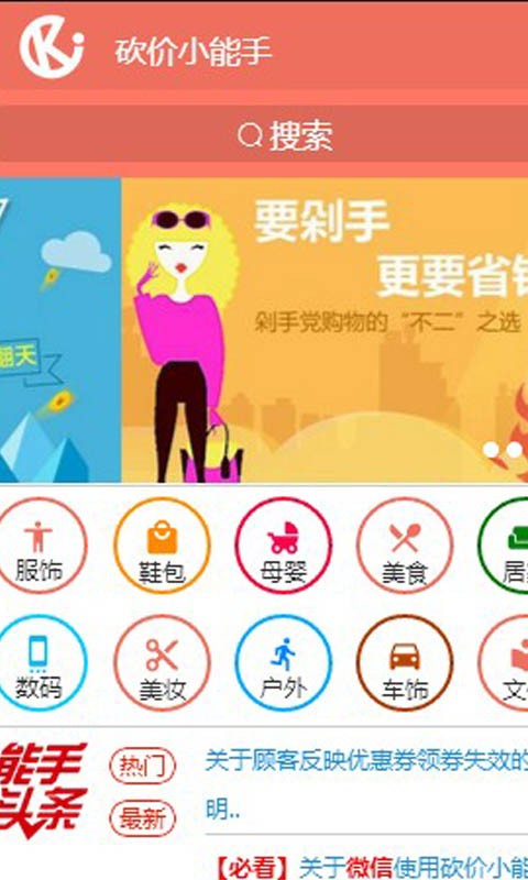 砍价小能手app是一个省钱的淘宝天猫优惠券导购打折网购平台,用户可以在这里获取最新优惠导购信息,免费领取优惠券,让购物更省钱!