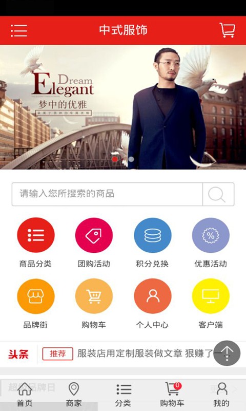 中式服装app是一款实用信息平台,集商城、品牌街、积分兑换、优惠活动团购活动和热卖等功能于一体,真实、高效地让您生活更简单!中式服装是以企业和个人带来商机为出发点,合作会员还可以通过供求商机来展示自己的特色产品,拓展移动营销渠道,随时随地把握移动互联网商机。