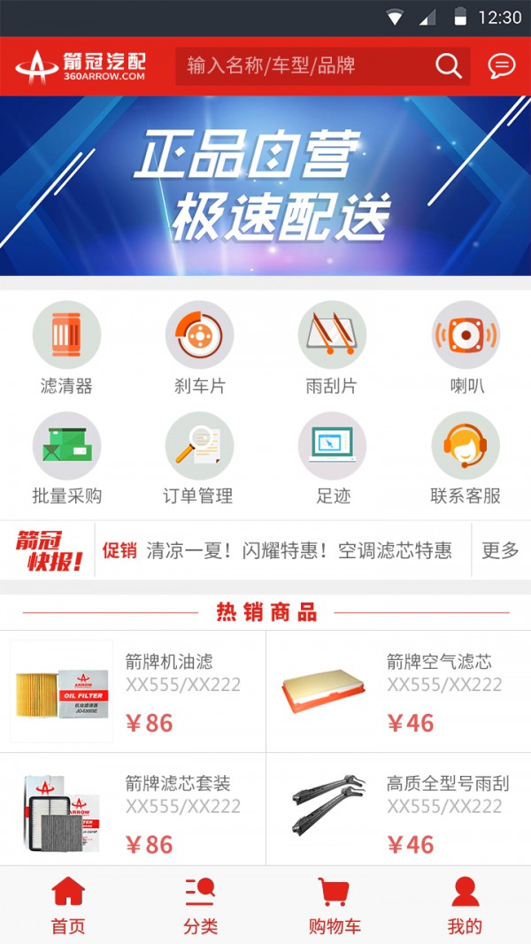 箭冠汽配app是一款网络购物应用,箭冠汽配app为用户打造一个便捷的在线汽配商城,方便用户在这里轻松选购各类汽配零件,为用户购物提供方便。