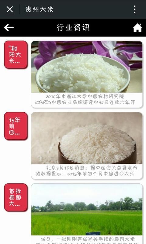 贵州大米app是一款网络购物应用,是掌晟时代科技打造的移动服务平台。在贵州大米app中你可了解大米信息,查阅供求信息,以及在线选购商品等。