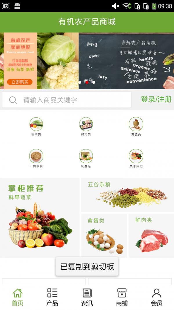 有机农产品商城app不仅具备购物、查询订单、搜索商品、行业资讯和产品评价等常用功能,而且还实现了手机版特有的会员注册登录、广告位、招商开店等功能。目标是整合当地品牌商、生产商、经销商,为商家和消费者之间提供一站式解决案。欢迎下载使用!