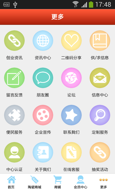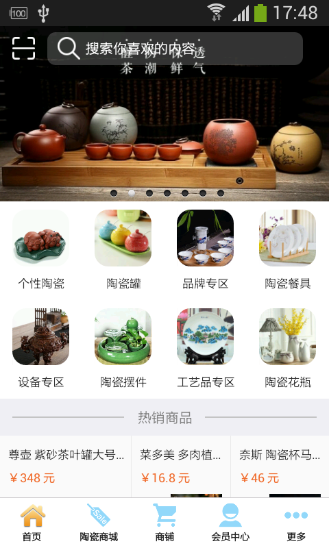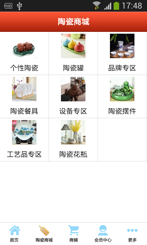 【陶瓷商城】:本应用提供相关各种产品分类,方便客户查询购买。