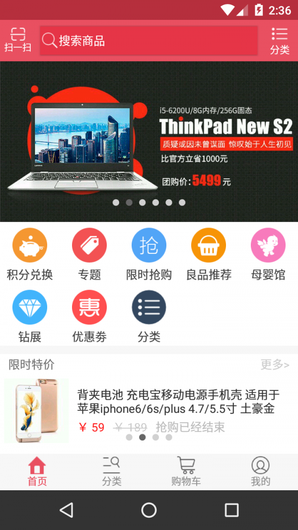可提供商品分类浏览和商品快捷搜索查询等实用功能,方便用户分分秒定位喜欢或者感兴趣的商品。