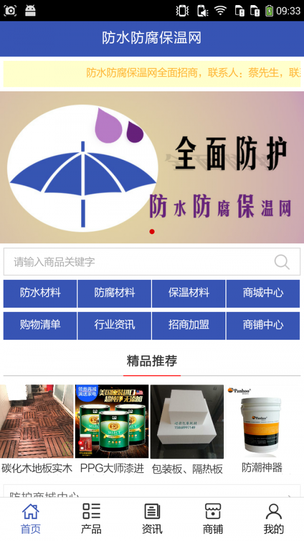 防水防腐保温网app是一款网络购物应用,是个专注于家居防水防腐保湿产品销售的移动平台。在防水防腐保温网app中伙伴们可便捷的选购商品,了解行业资讯信息等。