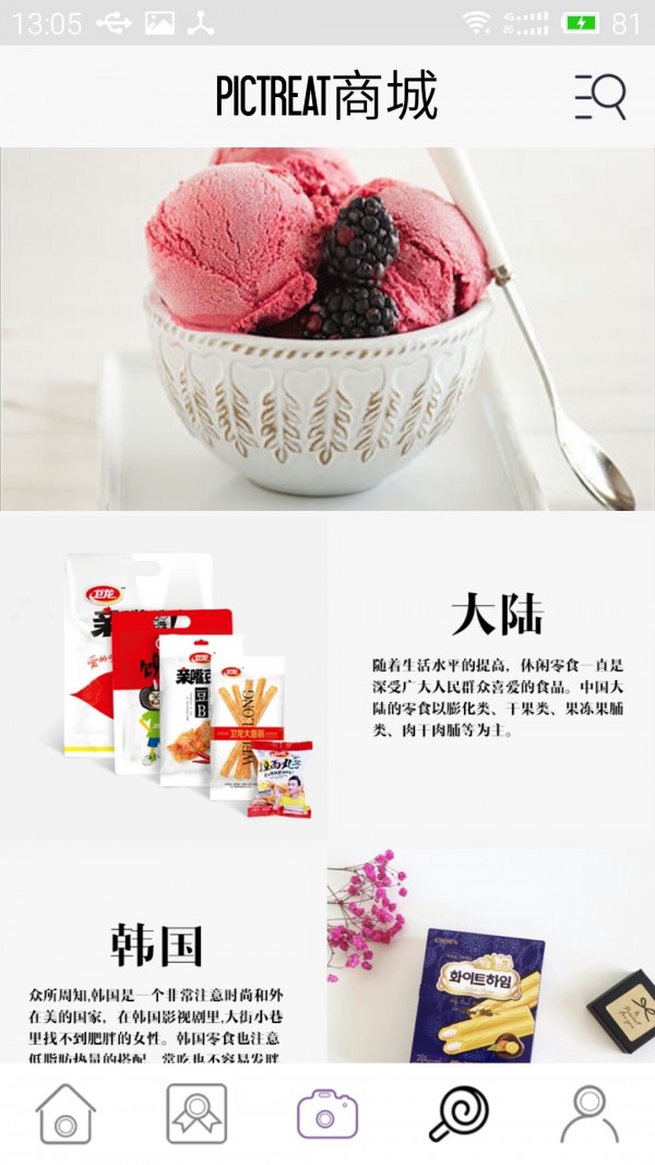 *商城首页:PICTREATER从世界各地为各位吃货挑选到近300种美食,保证种种精彩,给所有吃货一种全新的味蕾体验!