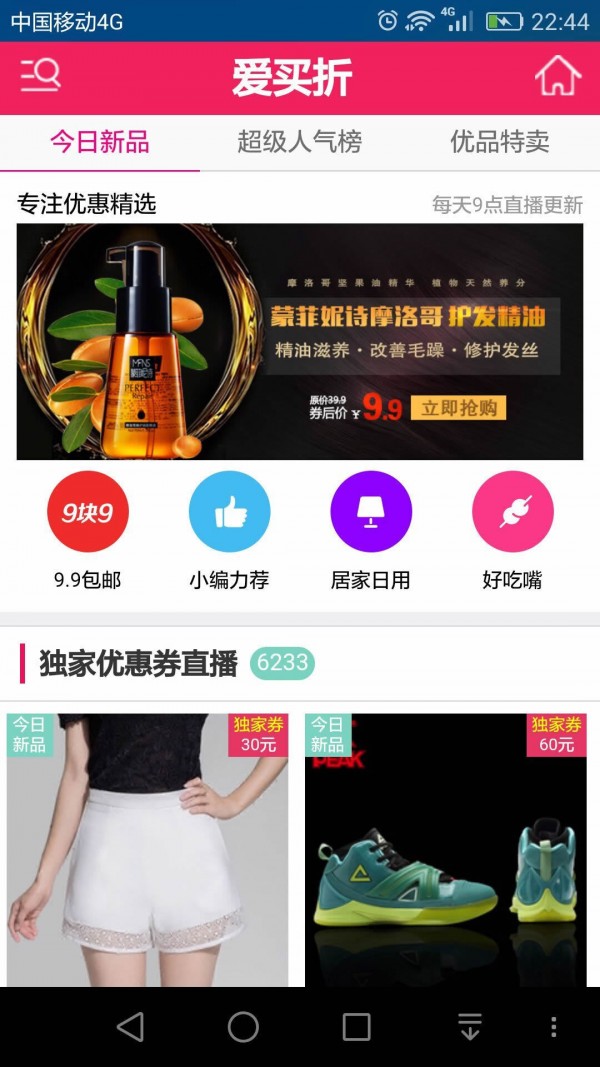 爱买折app是一款网络购物应用,是合肥恒迅信息技术有限公司开发的移动购物服务平台。爱买折app专门提供淘宝天猫收集的优惠券、9.9包邮信息等,让用户们尽享实惠服务。
