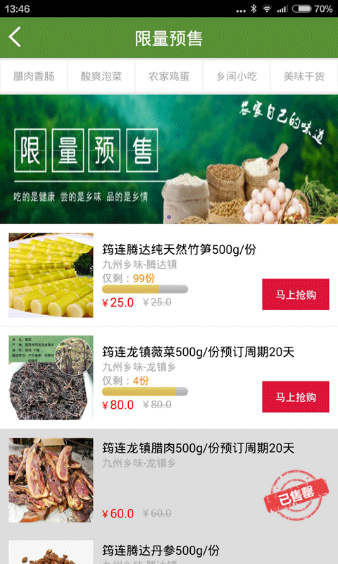 【限量预售】精心挑选应季农产品,提供生产前预订销售。