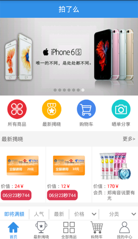 拍了么云购是一种全新的互动购物体验方式,引入当下互联网新概念,以“众筹”模式发售各类时尚产品或服务,打造全新创意购物平台。