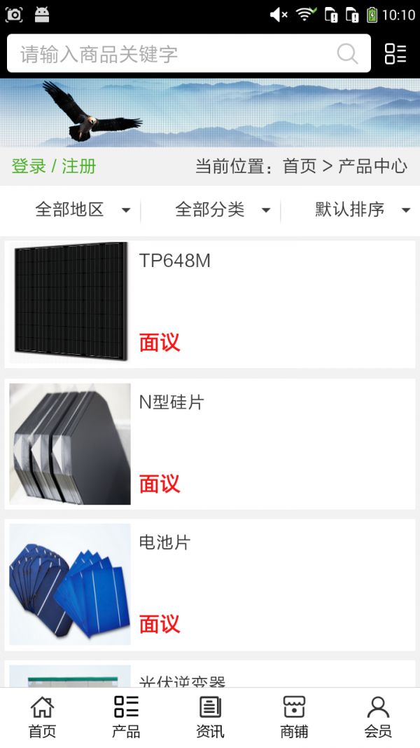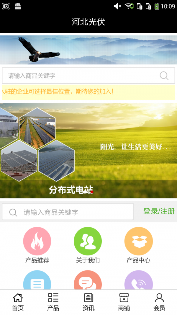 河北光伏客户端不仅具备购物、查询订单、搜索商品、行业资讯和产品评价等常用功能,而且还实现了手机版特有的会员注册登录、广告位、招商开店等功能。