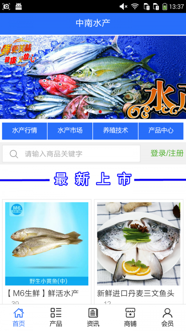 中南水产app不仅具备购物、查询订单、搜索商品、行业资讯和产品评价等常用功能,而且还实现了手机版特有的会员注册登录、广告位、招商开店等功能。