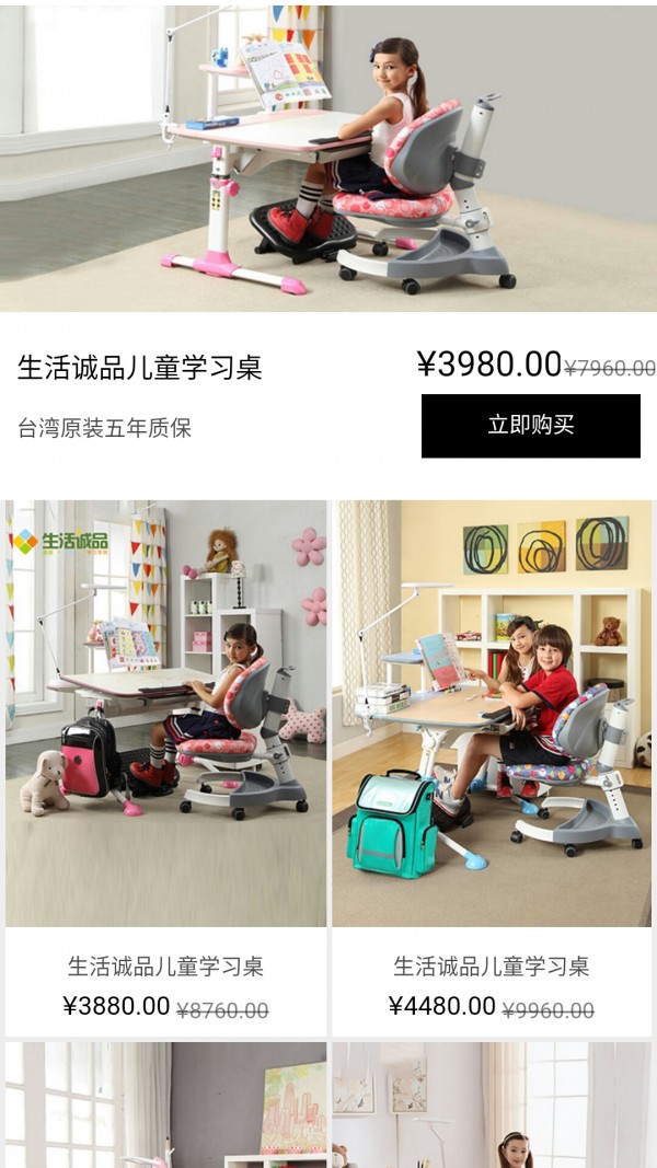 儿童学习桌app,主要包括:经典粉红款,男童灰阶款,女童带画板款,男童带画板款,男女式可升降款,带踏板款,背靠可拆洗款等。已添加淘宝或天猫客户端下单功能,下单直接到官方旗舰店,安全放心。