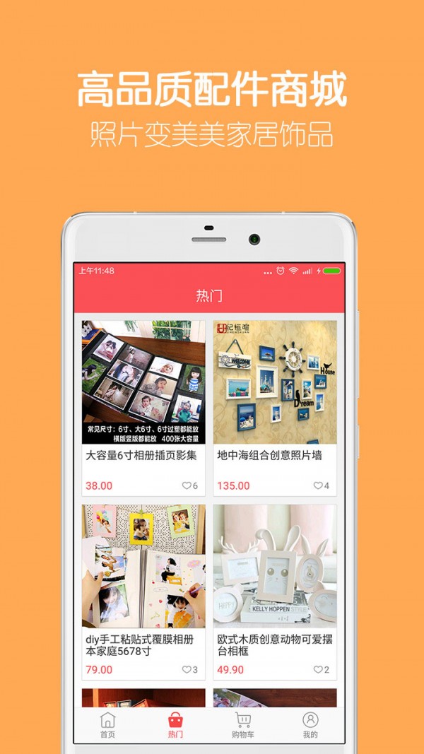 * 定制周边——可爱相框、超大容量相册、DIY配件等,让你的照片变个性家居和心意满满的创意礼物。