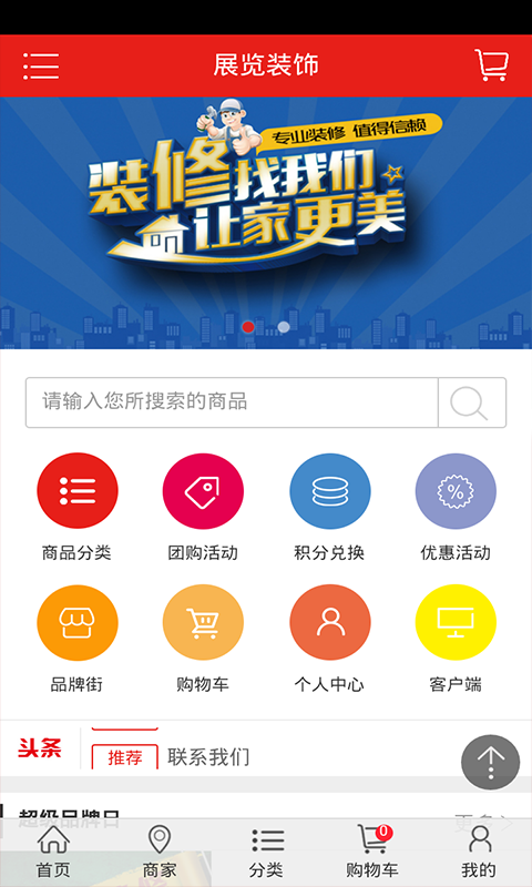 展览装饰是一款实用信息平台,集商城、品牌街、积分兑换、优惠活动团购活动和热卖等功能于一体,真实、高效地让您生活更简单!展览装饰是以企业和个人带来商机为出发点,合作会员还可以通过供求商机来展示自己的特色产品,拓展移动营销渠道,随时随地把握移动互联网商机。