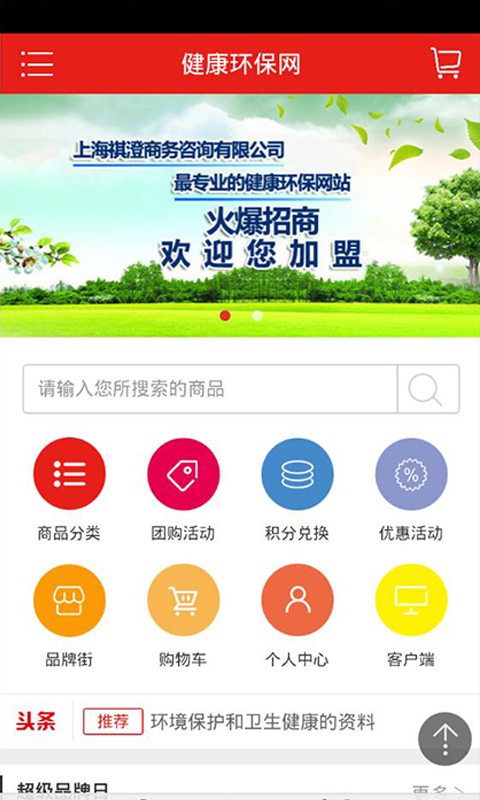 健康环保网是一款实用信息平台,集商城、品牌街、积分兑换、优惠活动团购活动和热卖等功能于一体,真实、高效地让您生活更简单!