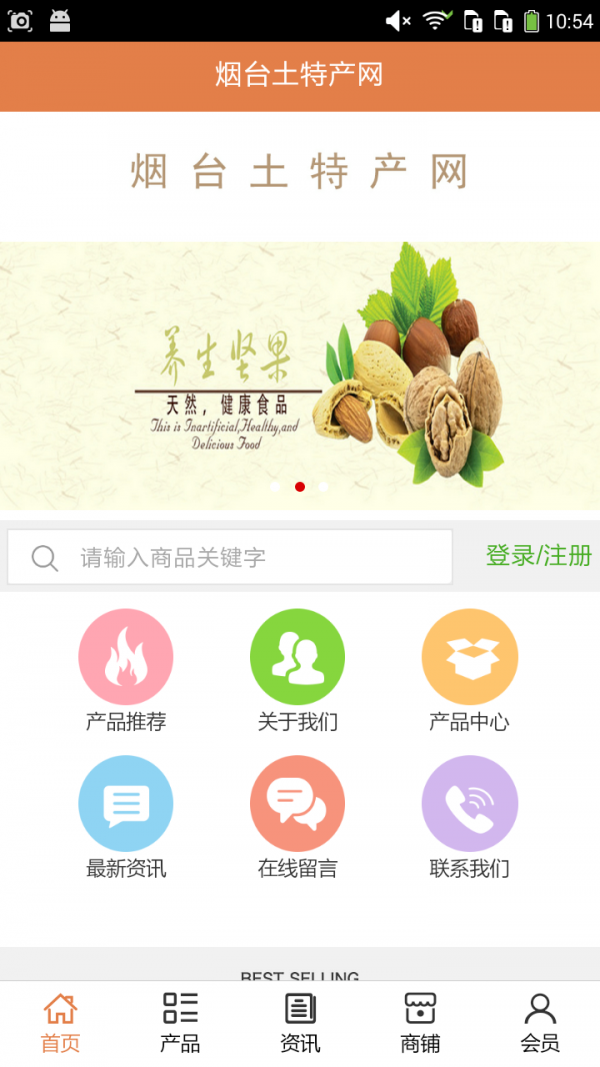烟台土特产网app不仅具备购物、查询订单、搜索商品、行业资讯和产品评价等常用功能,而且还实现了手机版特有的会员注册登录、广告位、招商开店等功能。目标是整合当地品牌商、生产商、经销商,为商家和消费者之间提供一站式解决案。欢迎下载使用!