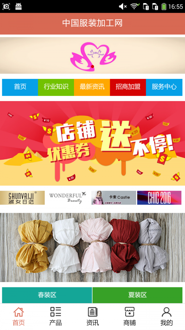 服装加工网客户端不仅具备购物、查询订单、搜索商品、行业资讯和产品评价等常用功能,而且还实现了手机版特有的会员注册登录、广告位、招商开店等功能。