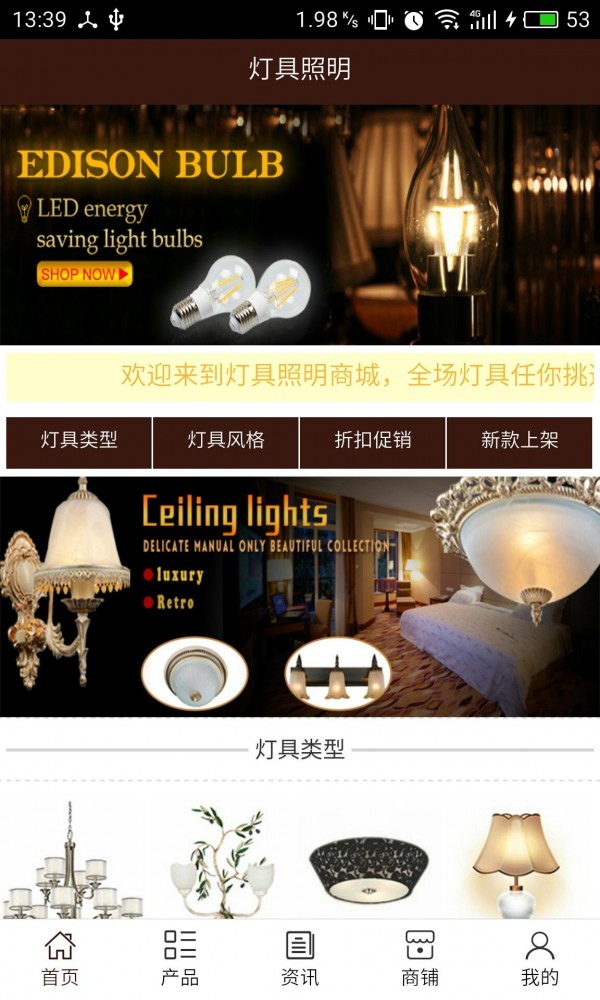 灯具照明客户端不仅具备购物、查询订单、搜索商品、行业资讯和产品评价等常用功能,而且还实现了手机版特有的会员注册登陆、广告位、招商开 店等功能。