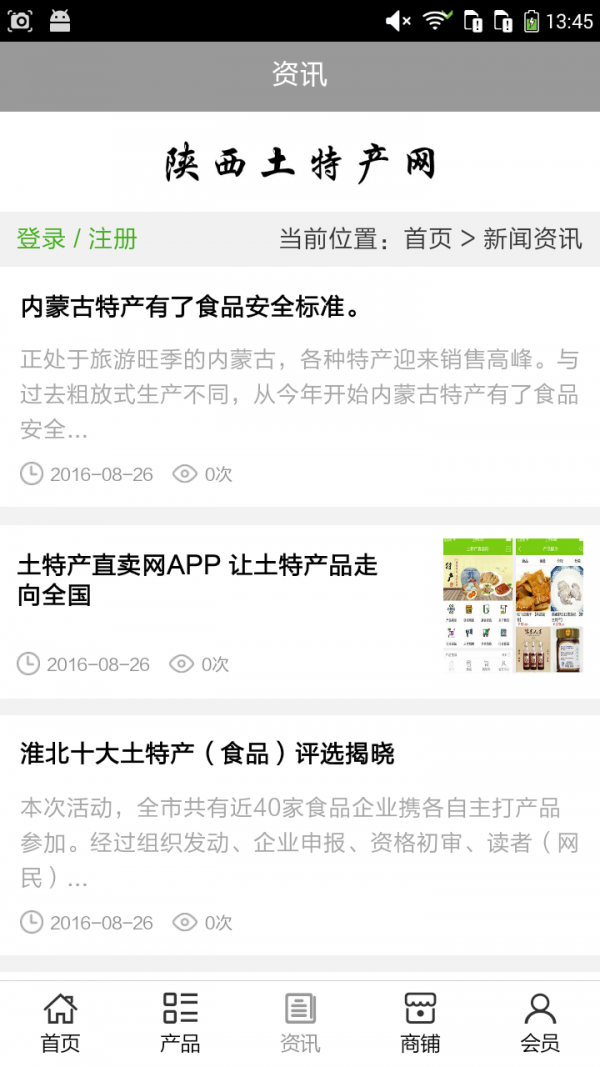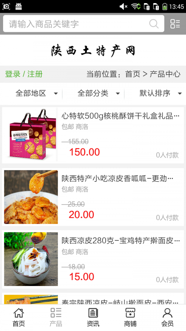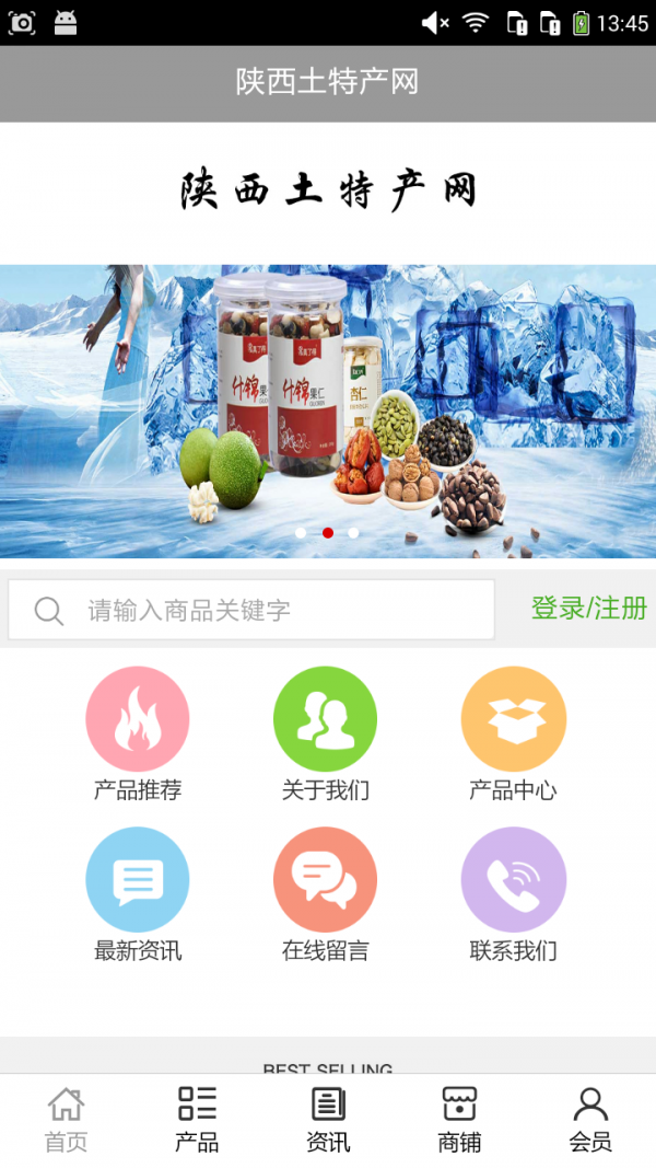 陕西土特产网APP不仅具备购物、查询订单、搜索商品、行业资讯和产品评价等常用功能,而且还实现了手机版特有的会员注册登录、广告位、招商开店等功能。目标是整合当地品牌商、生产商、经销商,为商家和消费者之间提供一站式解决案。