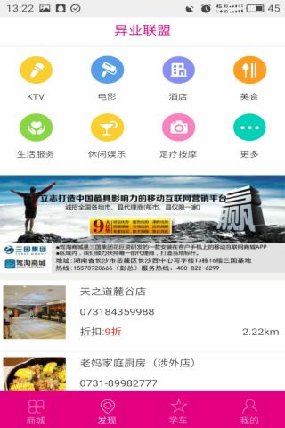 发现栏目为本地商家联盟,在这里主要是构建一个商家优惠联盟,消费者可享受优惠的同时,还能直接用兑币抵扣现金。 学车栏目专门针对渠道用户,主要为取到用户对外展示和宣传用。