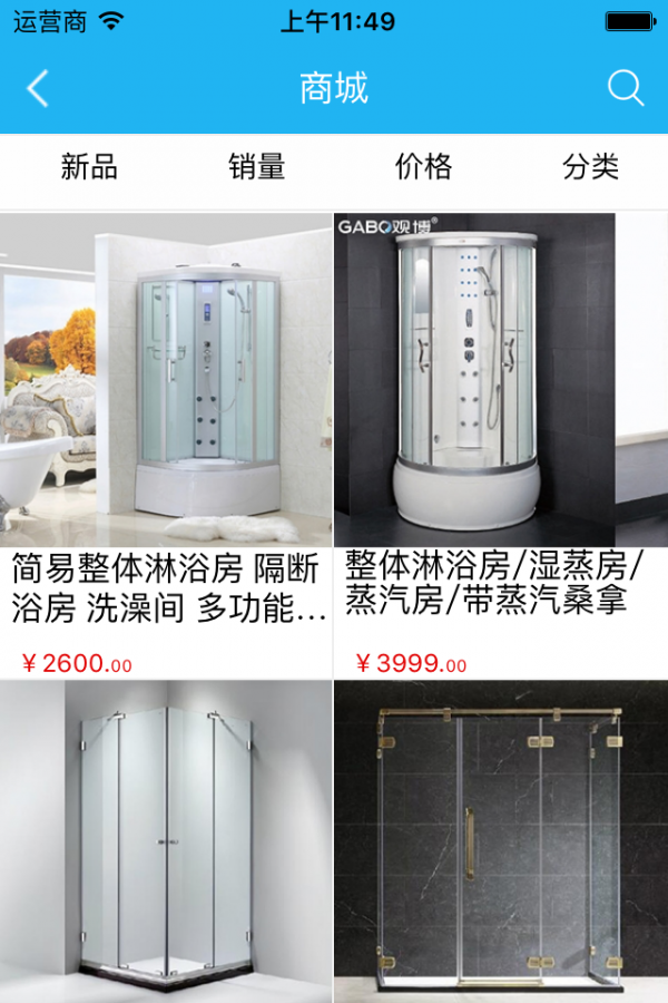 淋浴房商城是一个集浴室购物于一体的平台 。不仅具有下单、查询订单、搜索商品、等常用功能,还实现了收藏,招商等功能。其整合数千家品牌商、生产商,为商家和消费者之间提供一站式解决方案。时尚的界面,简单的操作,商品的秒杀。都能让客户赞不绝口!