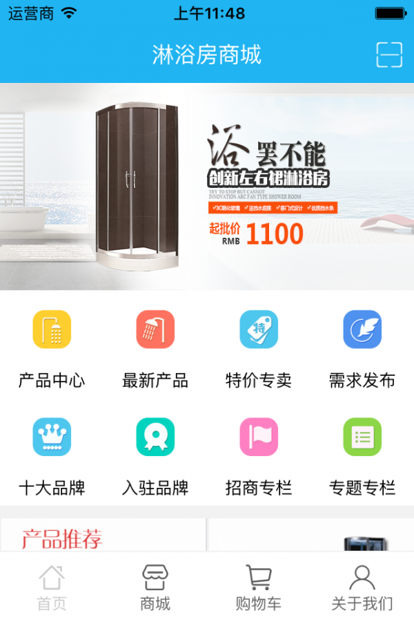 淋浴房商城app是一款网络购物应用,是个集浴室购物服务为一体的手机应用。在淋浴房商城app中伙伴们可查看产品信息,了解供求信息,以及在线选购商品等。