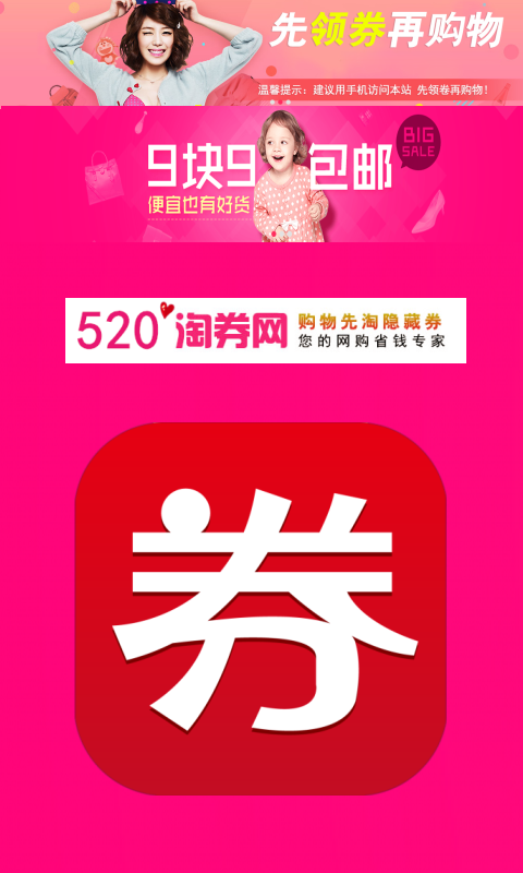 520淘券网---挖掘天猫淘宝隐藏优惠券---购物先淘隐藏券,您身边的网购专家!专注优惠精选!淘券网是天猫淘宝隐藏优惠券发布平台每天时时发布天猫淘宝商家内部隐藏优惠券,免单,1元购,9.9包邮,特价秒杀,白菜价商品!