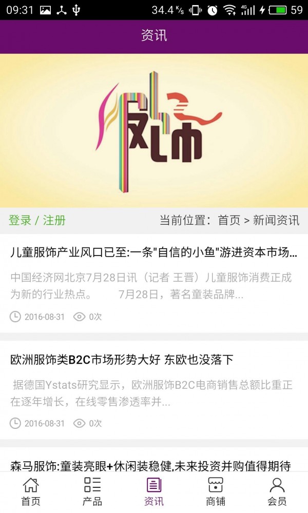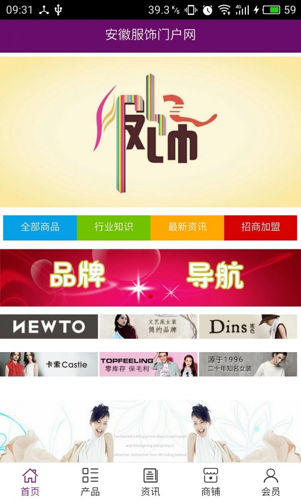安徽服饰门户网客户端不仅具备购物、查询订单、搜索商品、行业资讯和产品评价等长用功能,而且还实现了手机版特有的会员注册登陆、广告位、招商开店等功能。