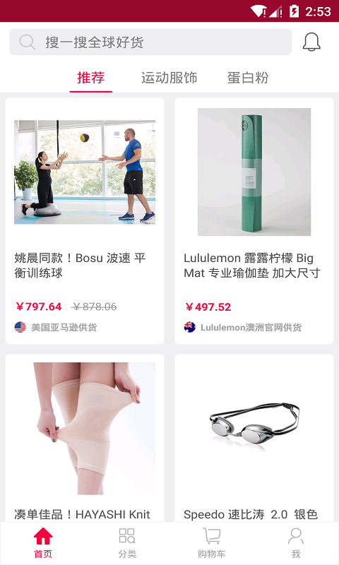 1.海量SKU商品:全球品牌健身装备,千万长尾商品,一起淘个够;