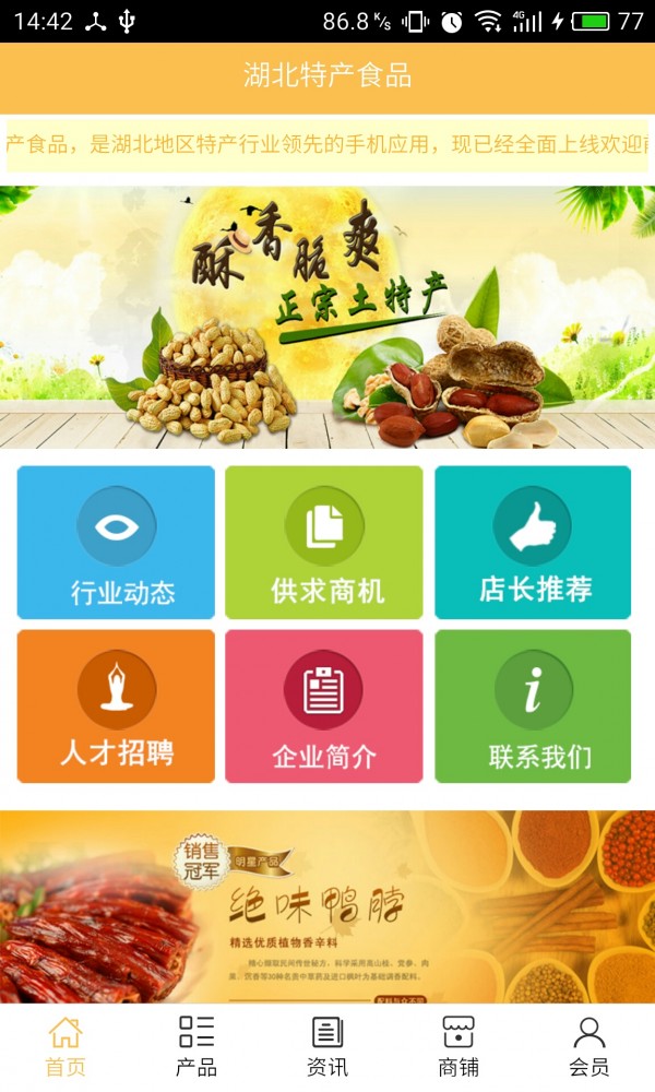 湖北特产食品是湖北地区特产食品行业的手机客户端平台,平台包含了糕点饼干、肉类熟食、干货坚果等产品!为湖北地区提供专业的特产行业信息;其中产品信息包括合理的价格、最新的商机,产品全面,内容详细。