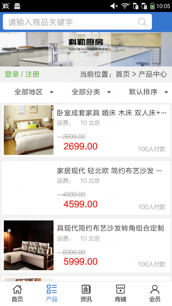 装饰建材城客户端不仅具备购物、查询订单、搜索商品、行业资讯和产品评价等常用功能,而且还实现了手机版特有的会员注册登录、广告位、招商开店等功能。