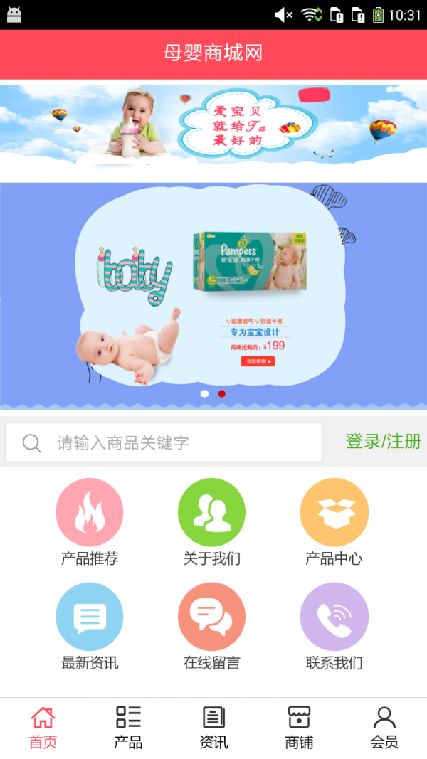 母婴商城网APP不仅具备购物、查询订单、搜索商品、行业资讯和产品评价等常用功能,而且还实现了手机版特有的会员注册登录、广告位、招商开店等功能。目标是整合当地品牌商、生产商、经销商,为商家和消费者之间提供一站式解决案。