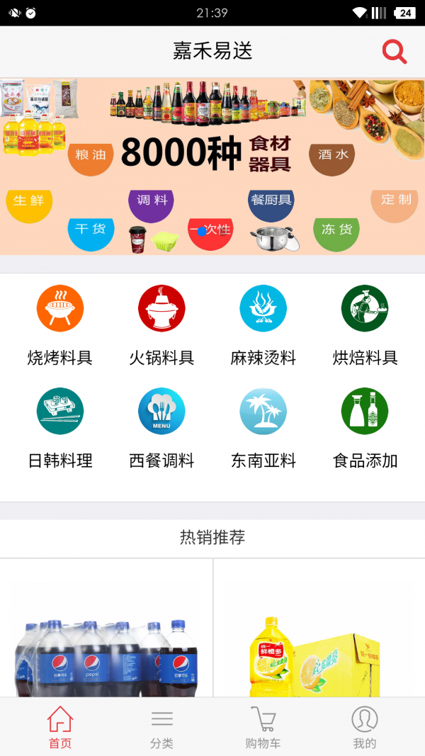 嘉禾易送是品类齐全的餐饮、酒店、办公用品销售商城。依靠锦绣大地批发市场为商家提供中西调料、干货干果、一次性用品、餐厨用品、粮油禽蛋、冷冻肉食、酒水茶饮、生鲜果蔬、加工定制等多品类商品。