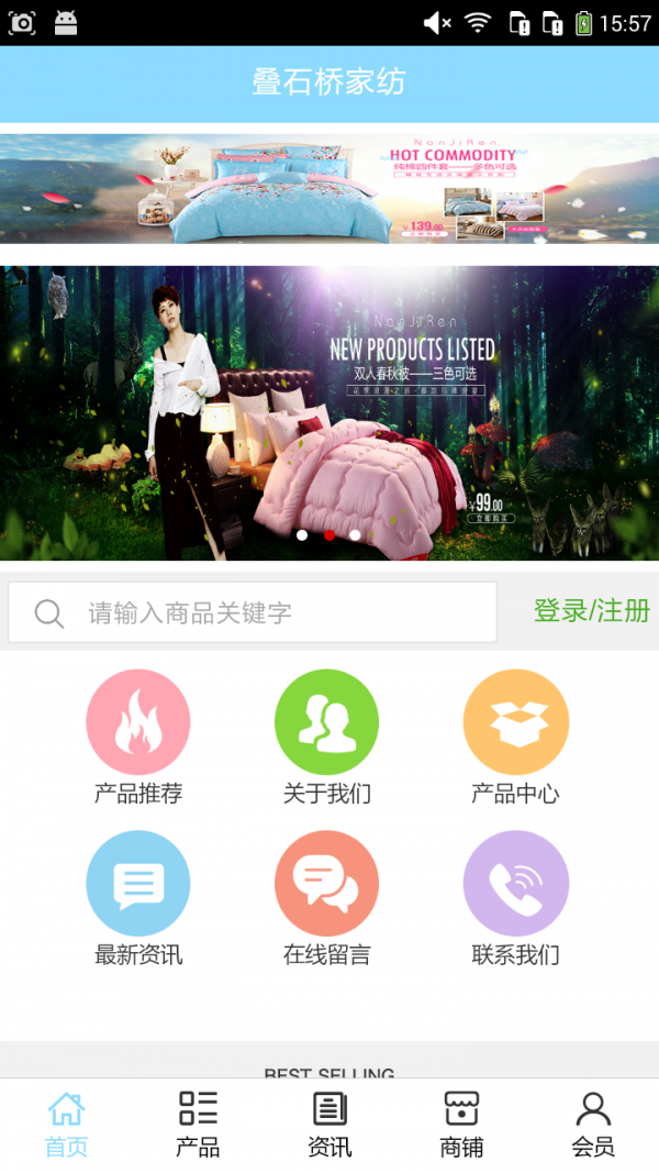 叠石桥家纺app不仅具备购物、查询订单、搜索商品、行业资讯和产品评价等常用功能,而且还实现了手机版特有的会员注册登录、广告位、招商开店等功能。目标是整合当地品牌商、生产商、经销商,为商家和消费者之间提供一站式解决案。欢迎下载使用!