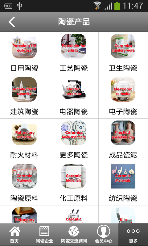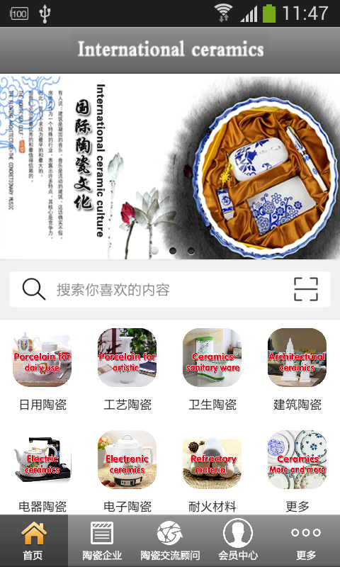 【陶瓷产品】:本应用提供相关各种陶瓷产品分类,方便客户查询购买。
