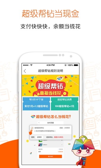 4、购物返利:确认收货后返超级帮钻,已送出数百万超级帮钻,超级帮钻可以在帮5买上购买任意商品抵现使用,100超级帮钻抵用1元