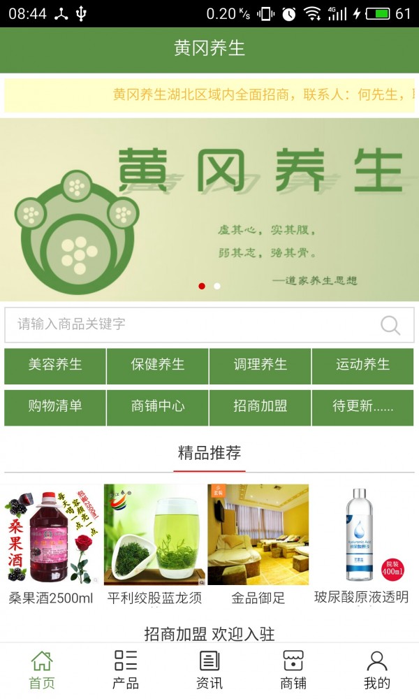黄冈养生app是一款网络购物应用,专注黄冈养生行业,主营各种养生产品,为用户购买相关产品提供便利,还可以获取更多养生相关资讯。