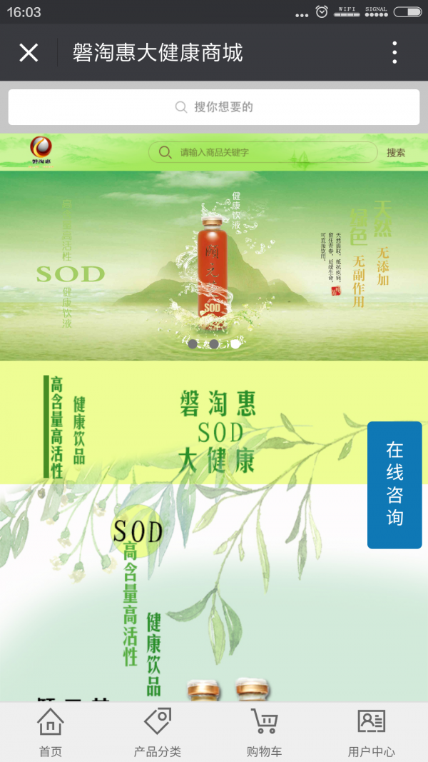 磐淘惠大健康商城与SOD的结合不仅为参与者带来健康和富贵,而且将会促进国家和民族的大健康事业蓬勃发展。磐淘惠主要以大健康的产品为主,目前主要是颐元芝牌高含量高活性SOD饮品,以后还会不断增加更多优质健康的产品。