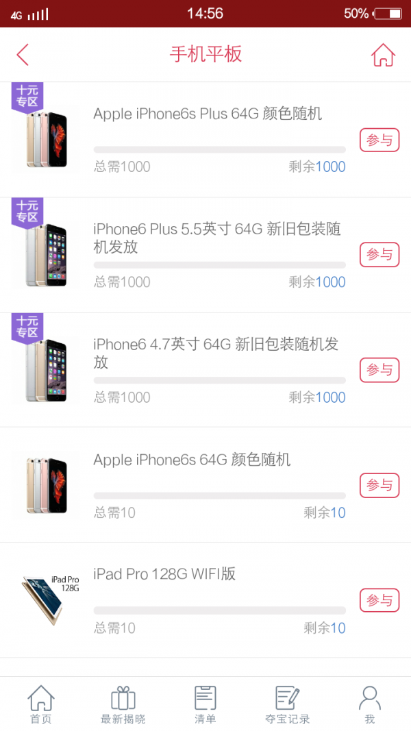 夺宝大王app上提供各种奖品,每个奖品分配对应数量的号码,每个号码价值1个夺宝币,当一件奖品所有号码售出后,根据既定的规则计算出一个幸运号码,持有该号码的用户,直接获得该奖品。