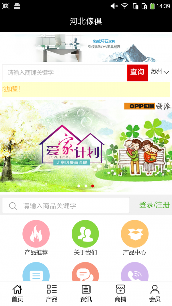 河北傢俱app不仅具备购物、查询订单、搜索商品、行业资讯和产品评价等常用功能,而且还实现了手机版特有的会员注册登录、广告位、招商开店等功能。目标是整合当地品牌商、生产商、经销商,为商家和消费者之间提供一站式解决案。