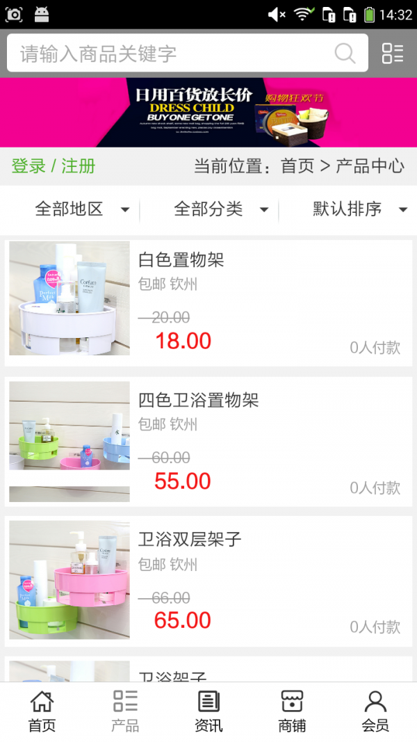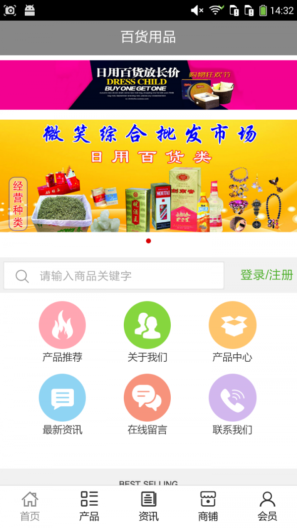 百货用品app不仅具备购物、查询订单、搜索商品、行业资讯和产品评价等常用功能,而且还实现了手机版特有的会员注册登录、广告位、招商开店等功能。目标是整合当地品牌商、生产商、经销商,为商家和消费者之间提供一站式解决案。欢迎下载使用!