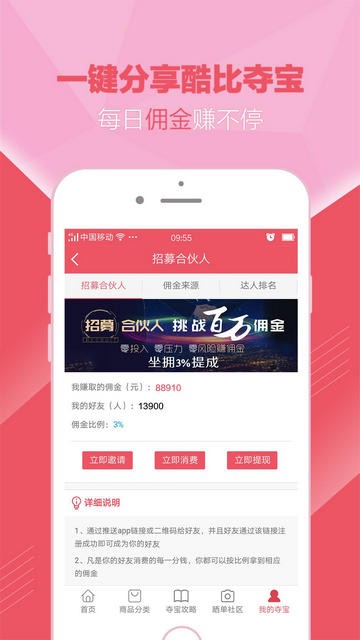 3.一键分享酷比夺宝,百万佣金等你赚