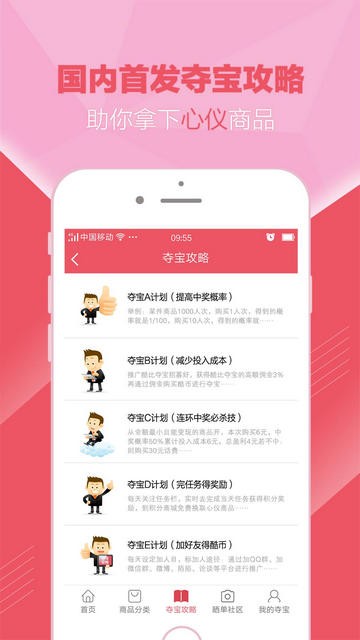 在夺宝攻略的攻略说明里,详细的介绍让你如何用最少的投入获得最大的回报,
