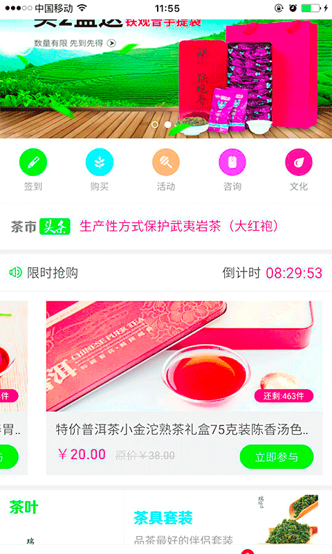 采茶会app是一款网络购物类应用,用户可以在这里了解茶叶、茶具等茶产品信息,随时购买,还可以获取更多服务信息。