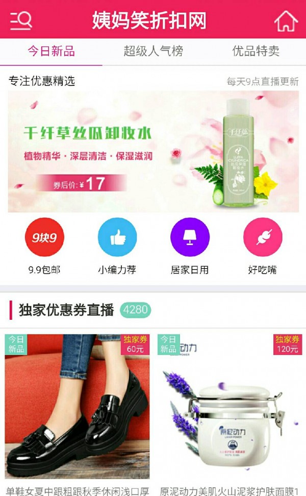 姨妈笑-优惠券折扣直播第一站!每天更新千款,纯人工筛选验货,限时限量特卖,全场1折包邮! 姨妈笑-优惠券折扣直播第一站!每天更新千款,纯人工筛选验货,限时限量特卖,全场1折包邮!