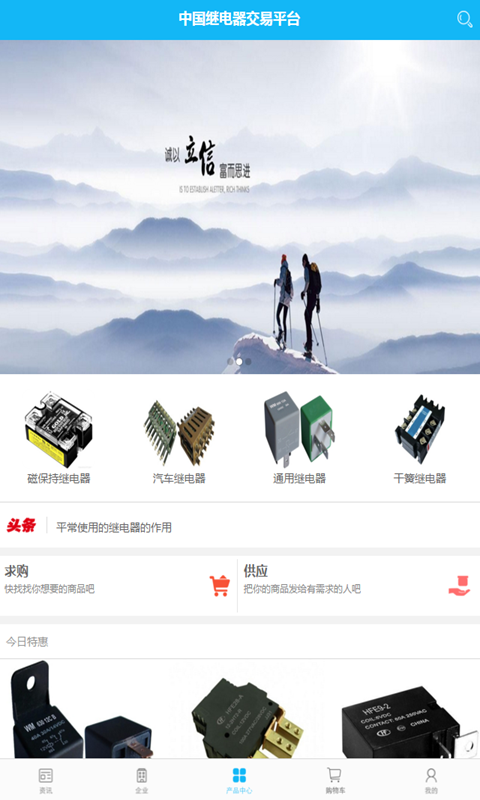 中国继电器交易平台app是一款电商购物应用,中国继电器交易平台app为用户打造一个购物服务平台,用户可以在这里轻松选购需要的各种电器商品,为用户购物带来方便。