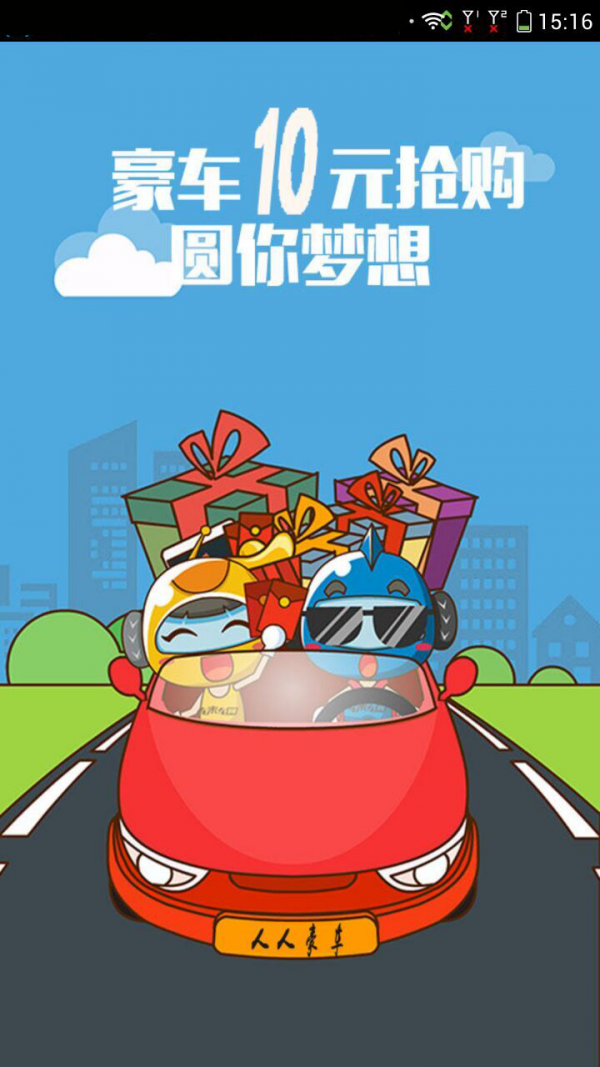 【10元抢豪车】-在人人豪车,车辆价格被分成若干等份,10元一份,用户可以购买一份或者多份,当等份全部售完后,系统根据规则计算出一名幸运者作为车辆的拥有着!