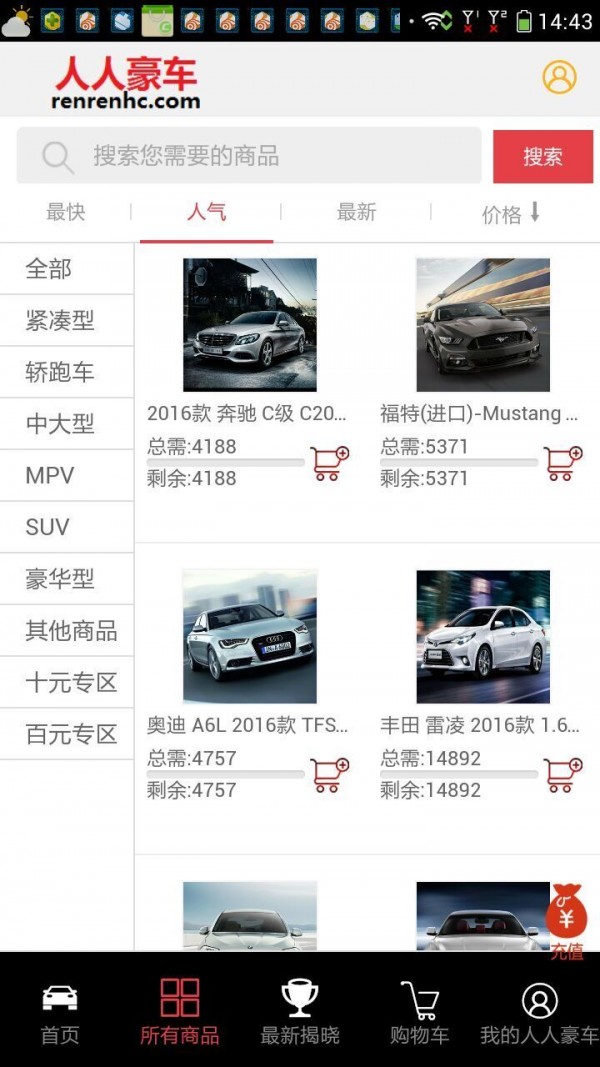 人人豪车app是一款网络购物应用,是大型创意买车市场——人人豪车网的官方手机客户端。人人豪车app主要以1元众筹购物为运营核心,致力于为大家提供公平、公正和公开的购物服务。人人豪车天天给你惊喜!