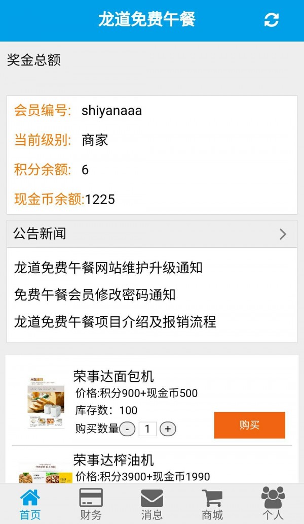 用户使用app在龙道合作商家消费100元,合作商家赠送价值100元的报销卡