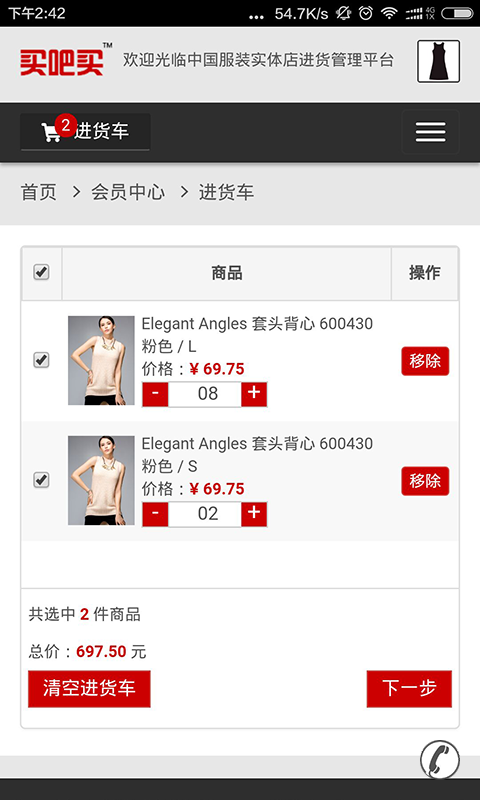 买吧买app是一款网络购物应用,为广大服装实体店店主提供进货渠道,一键采购,更加方便快捷。