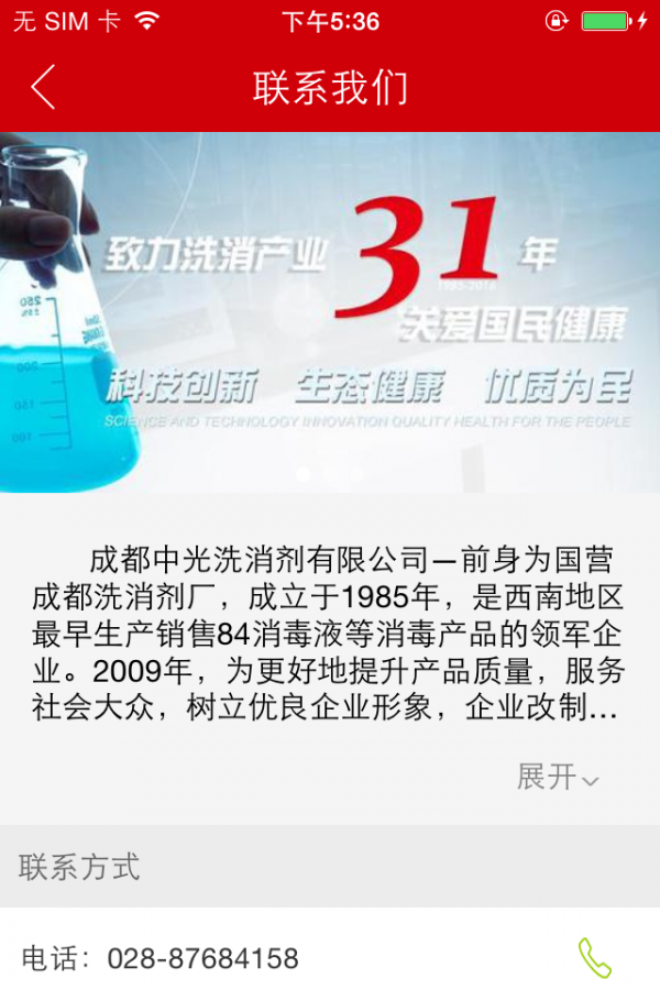 成都中光洗消剂有限公司—前身为国营成都洗消剂厂,成立于1985年,是西南地区最早生产销售84消毒液等消毒产品的领军企业。2009年,为更好地提升产品质量,服务社会大众,树立优良企业形象,企业改制更名为“成都中光洗消剂有限公司”。